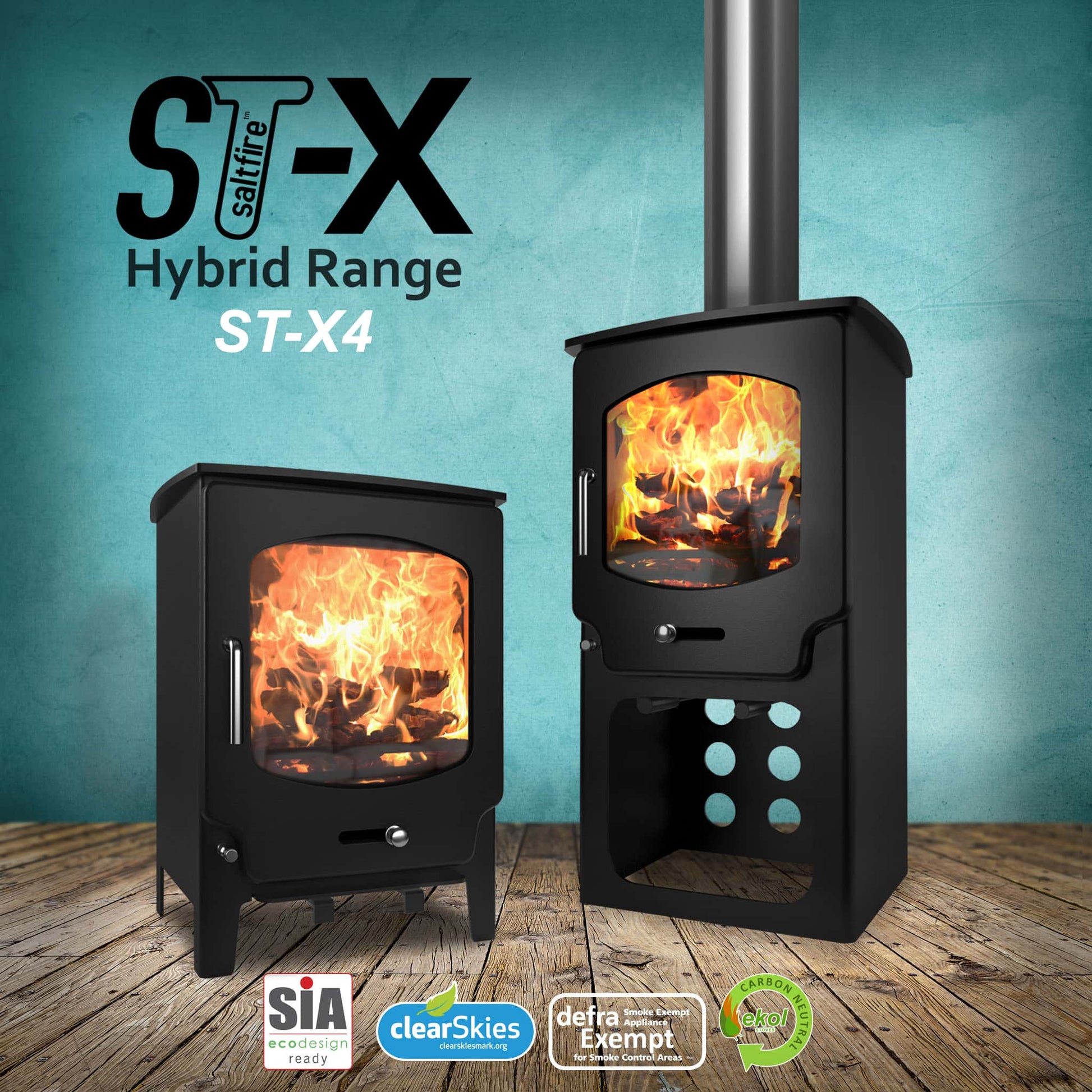 The Saltfire ST-X4 Tall - a new addition to our range of ultra-clean-burning stoves. The result of an extensive development program in our labs. The smallest of the new ST-X models - the ST-X4 Tall is rated at 4.1kW output, and approx 80% efficiency.